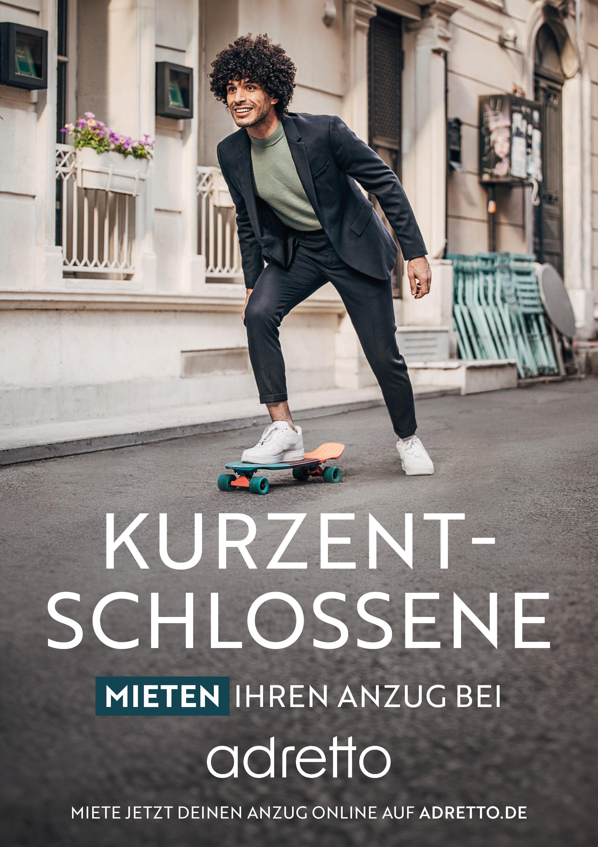 Für den Markteintritt in Deutschland und Österreich haben wir adretto ein frisches, modernes Brand- und Kampagnen-Design verliehen. Die neue Bildwelt und Keyvisuals zeigen, dass es den passenden Anzug für jeden Typ gibt – vom Gala-Abend bis zur Diplomfeier. Die Kampagne erreichte die Zielgruppe digital über Google, META und TikTok und positionierte adretto als stylische, zugängliche Anzug-Vermietung für alle Events.